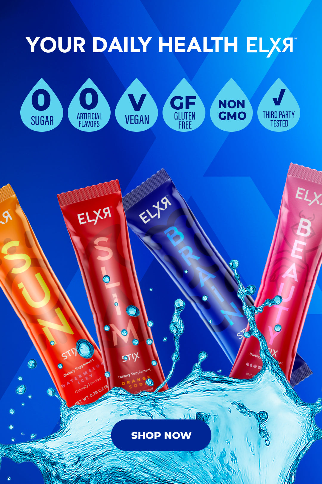 ELXR HydraCell Technology™ delivers industry leading 1650mg full spectrum electrolytes (8X Gatorade, 2X LiquidIV and Prime) plus 72 trace minerals for vitality, longevity and cellular regeneration. Our targeted nutrients help support hydration, energy, metabolism, and skin protection all in one stick.